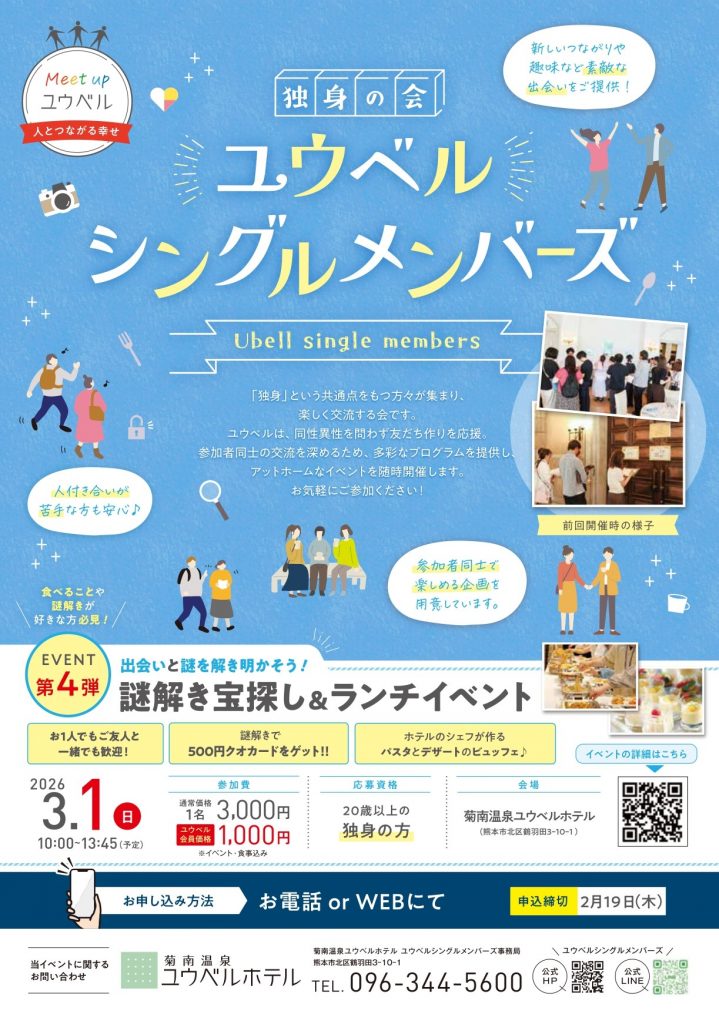 【独身の方限定】出会いと謎を解き明かそう!謎解き宝探し&ランチイベント in 菊南温泉ユウベルホテル