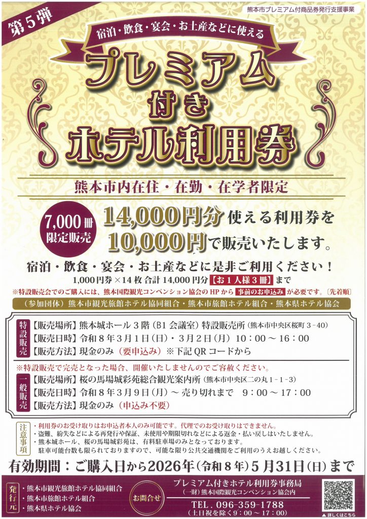 詳しい「プレミアム付き利用券 第5弾」のご購入や内容については、熊本国際観光コンベンション協会の公式サイトをご覧ください。